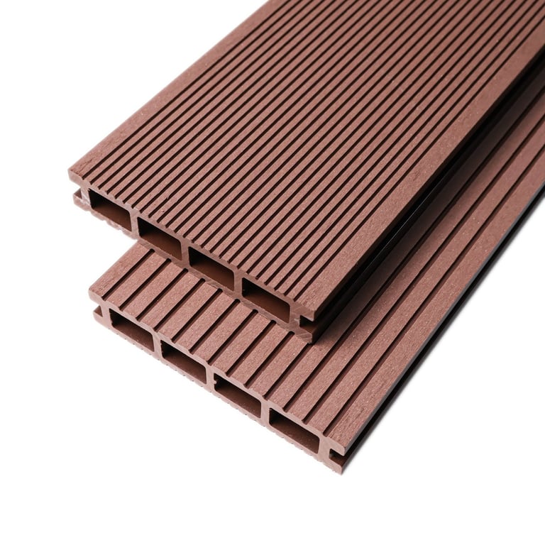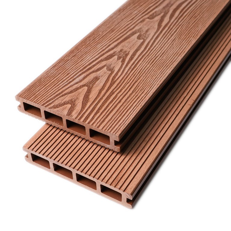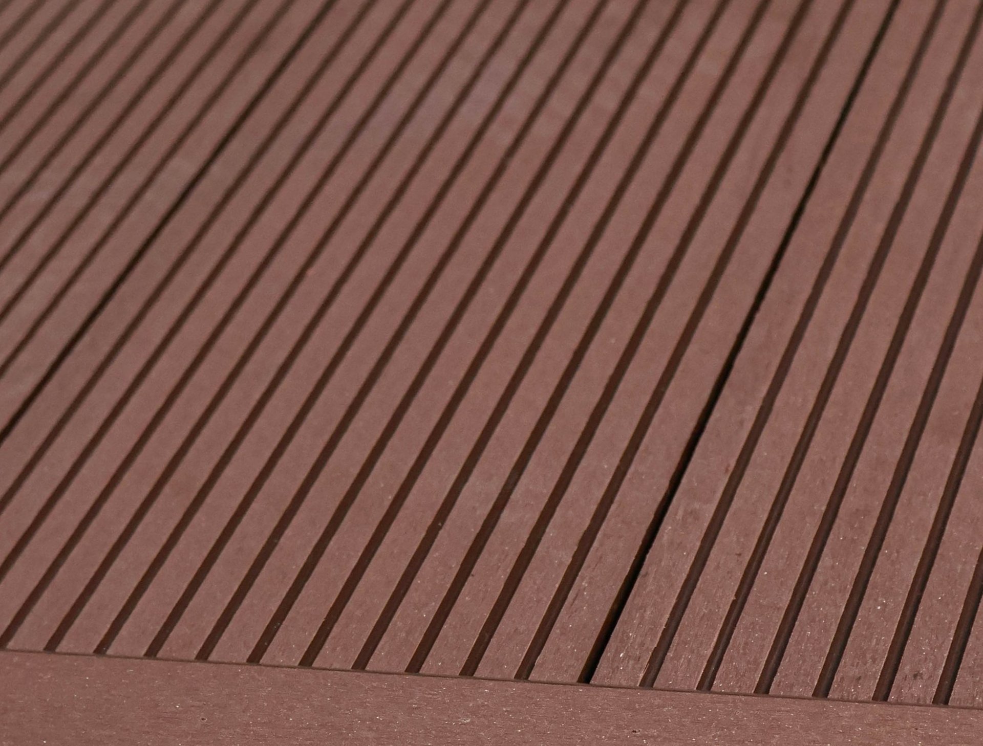 Material: Fibras/partículas de madeira: 45–60% + Matriz polimérica: 30–50% + aditivos técnicos: 3–10% — agentes de acoplamento (compatibilizantes), estabilizadores UV, pigmentos, lubrificantes, agentes antifungo, retardantes de chama e cargas minerais (CaCO₃).