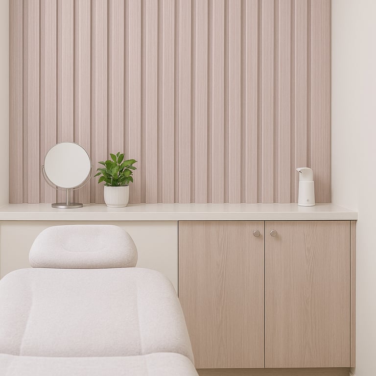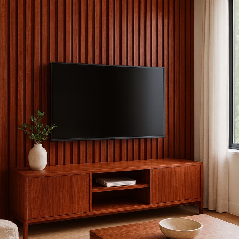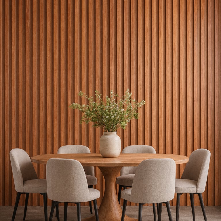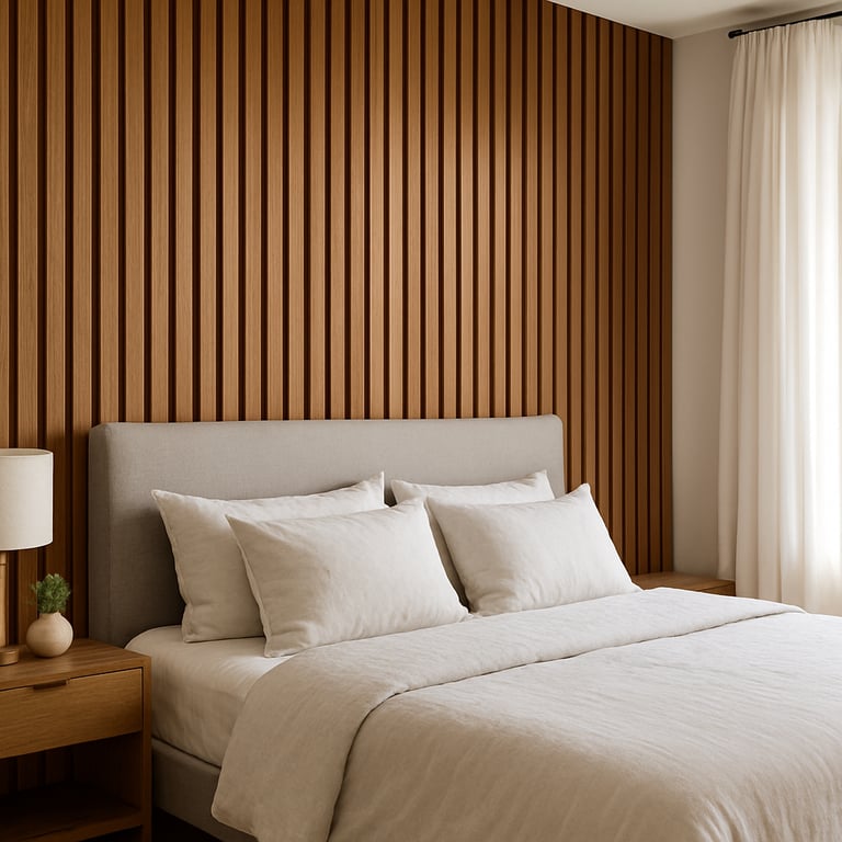 Versátil e marcante, o Painel Ripado WPC transforma paredes em verdadeiros cenários. Na sala, é perfeito como painel de TV, criando um fundo elegante e trazendo sensação de amplitude. No quarto, funciona como cabeceira estendida, com clima de suíte de hotel, principalmente quando combinado com iluminação indireta. Corredores, halls de entrada, home offices, recepções e lavabos também ganham protagonismo com o painel: ele adiciona textura, profundidade e um ar de projeto assinado, valorizando desde ambientes residenciais até espaços corporativos que buscam transmitir profissionalismo com conforto visual.
