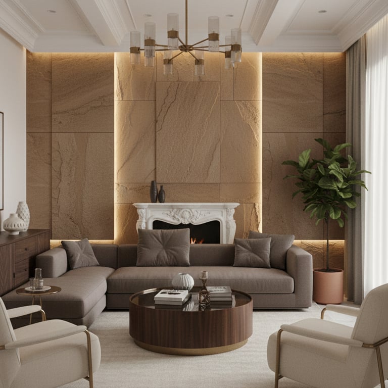 Versátil, o Revestimento Texturizado Kalla Decor transita com naturalidade por salas de estar, halls de entrada, painéis de TV, cabeceiras, recepções, lojas, escritórios e áreas de circulação que pedem impacto imediato. Em projetos de arquitetura e interiores, ele funciona tanto como protagonista de uma parede de destaque quanto como pano de fundo sofisticado para composições com madeira, metais, iluminação linear e mobiliário assinado.