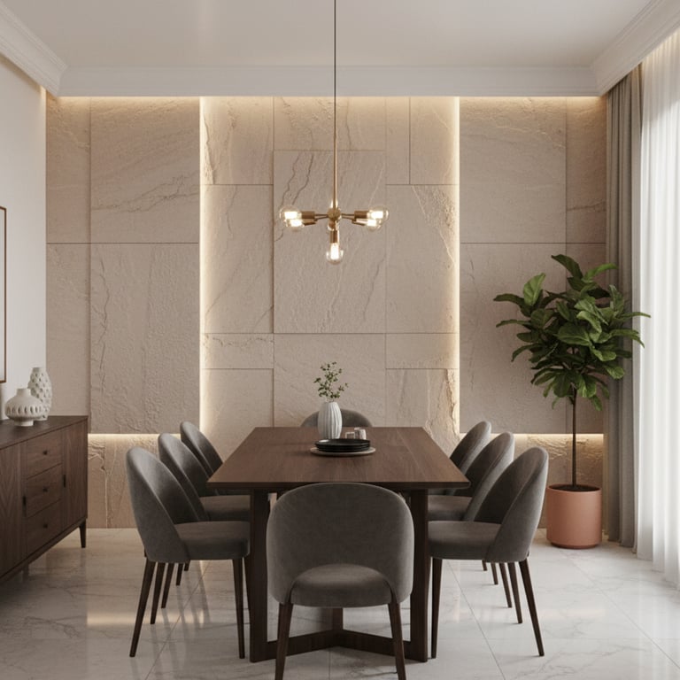 A escolha ideal para transformar planos neutros em fundos de alto impacto, com linguagem contemporânea e assinatura profissional. Criando ritmo nas paredes e conversa com luz, mobiliário e materiais nobres.